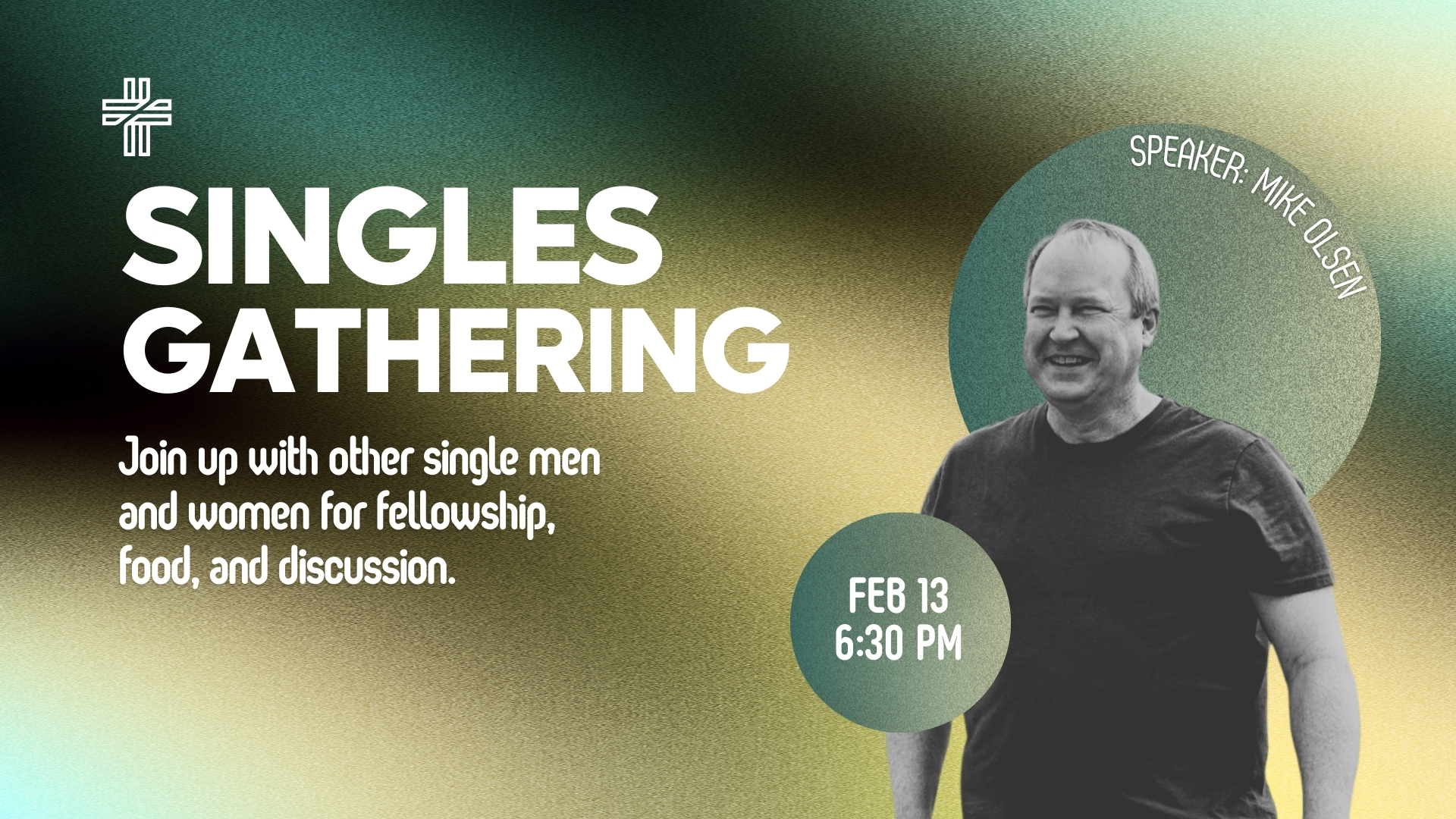 Join together with other single men and women for fellowship, food, and discussion! Our guest speaker (Mike Olsen) will be sharing his experience with singleness and living life with purpose.